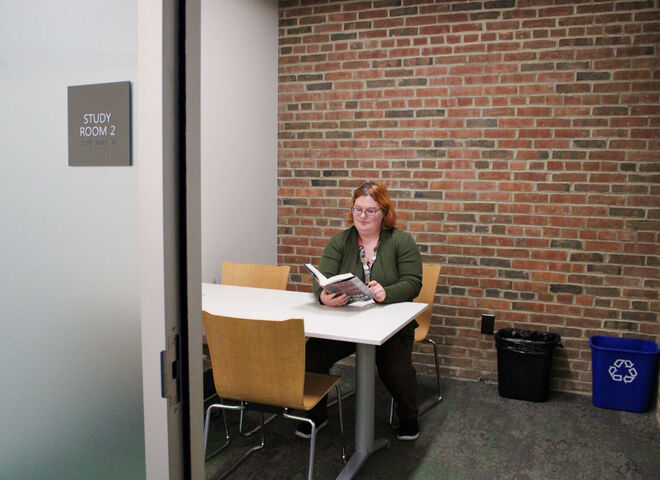 Study rooms are intended for individuals or groups of up to four people. These rooms may be reserved up to three days in advance.
